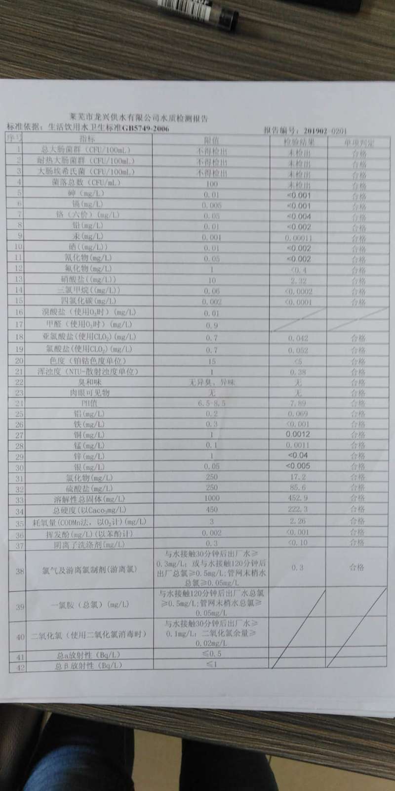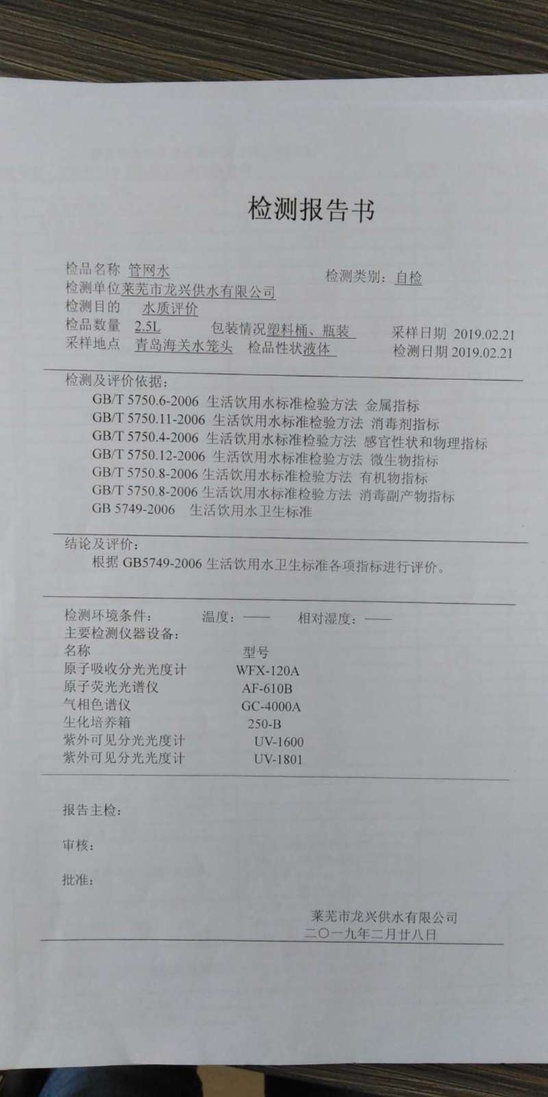 青島海關(guān)管網(wǎng)水龍頭水質(zhì)檢測(cè)報(bào)告