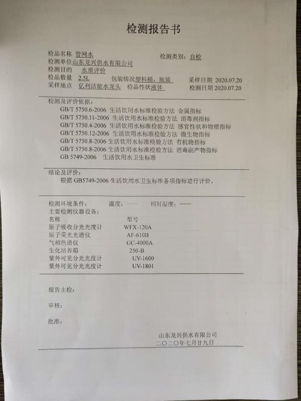 7月管網(wǎng)水月檢報告