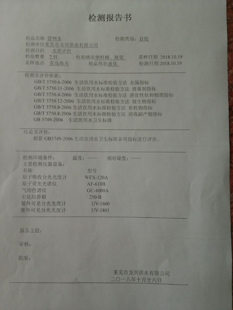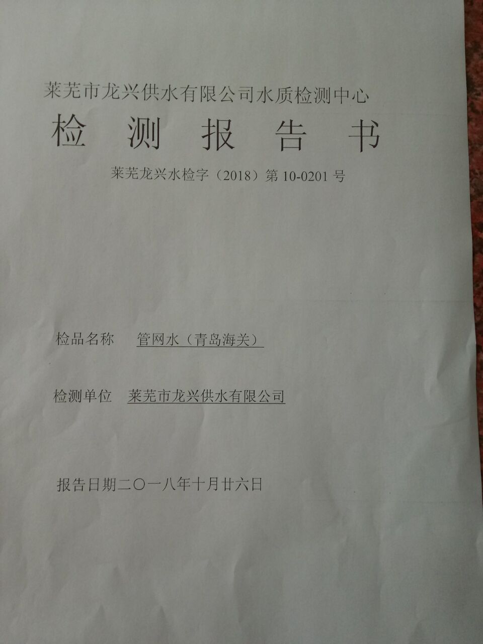 青島海關(guān)管網(wǎng)水水龍頭水質(zhì)檢測報告