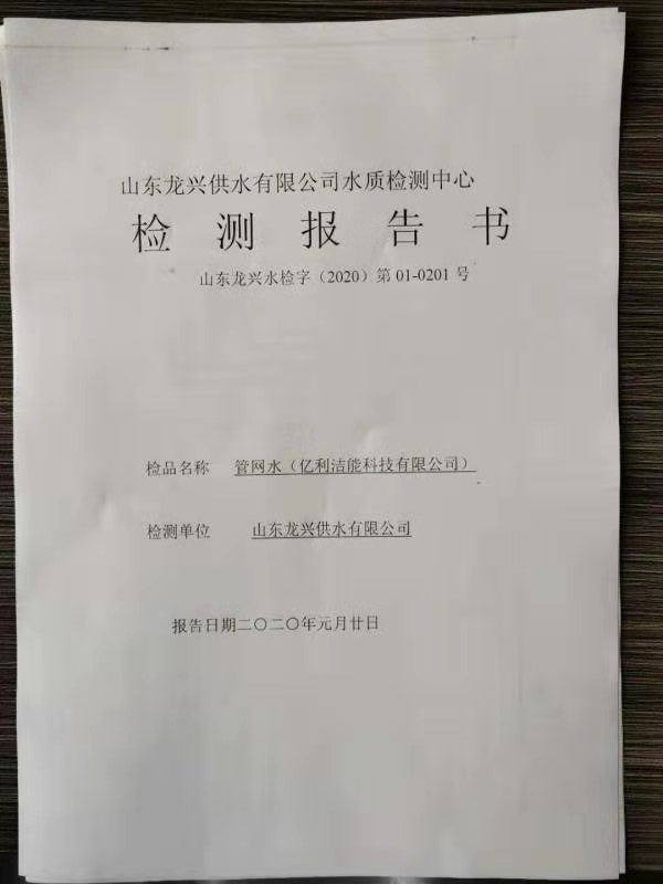 2020年1月億利潔能管網(wǎng)水龍頭水質(zhì)月檢報告